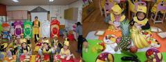 오색 친구들도 맛있는 과일과 채소 달라고 입을 쩍쩍 벌리고 있네요.