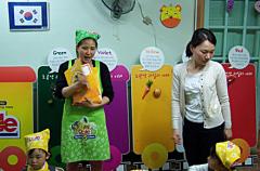 "선생님 ~~ 5가지 색깔 빨간,노란,초록,보라,하얀색 과일