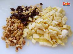 재료 : 식빵 6쪽, 바나나 2개, 호도, 잣, 건포도 약간씩,