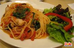 딸은 메뉴만 보고 초코케익인 줄 알고 시켰다가, 과일이 나오자 적잖이 실망한 듯.