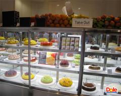이 곳에서는 과일케익을 여러개를 진열하고, 한 조각씩 잘라서 판다.