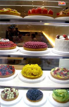 드디어 도착. 가게 밖으로 훤히 비치게 과일 케익들을 전시해 놓고 있다.(모형)
