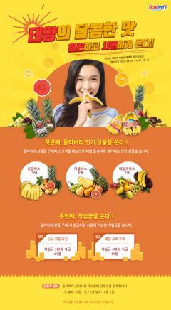 따사로운 봄을 맞이하여 태양의 기운을 받아 더욱 달콤해진 과일로 춘곤증도, 환절기 감기도 상쾌하게 날려버릴 수 있도록 돌리버리에서 즐거운 이벤트를 준비했습니다.