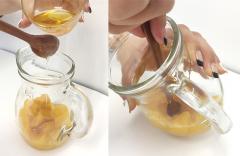 이제 숟가락으로 황도를 열심히 으깨주세요!