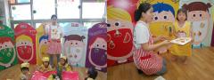 빨강,노랑,초록,보라,하얀과일과 채소들이 어디에 좋은 지 선생님의 설명을 듣고 컵에 쏙 넣는 우리친구들~