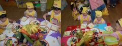 몸 속 나쁜 세균을 없애 주는 하얀 바나나를 쓱싹 자르고 있는 우리 친구들~~