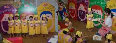 집중해서 듣는 우리 친구들~~ 빨강, 노랑, 초록, 보라, 하얀 색깔 각 색깔이 어디에 좋은 지 영양선생님이 재미있게 설명해 주고 계 시답니다.