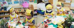 하얀 바나나도 잘라서 샌드위치 속에 쏙!!! 서로 서로 응원하면서 요리하는 모습이 너무 멋져요. 다음은 어떤 색을 찾아 볼까요?