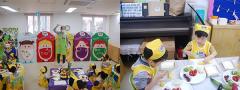 “과일 채소 골고루 먹어요”라고 다짐을 하며 기념 사진을 찍었답니다.