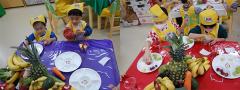 바나나는 하얀 과일이라는 걸 알고 빨간 과일과 채소를 찾아 보기도 했어요.