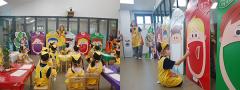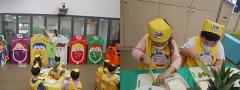 강당에 우리 친구들을 맞이할 준비를 완료하고 우리 친구들도 노란 앞치마와 머리수건을 하고 밖에서 어떤 수업을 할까 기다리고 있었답니다.