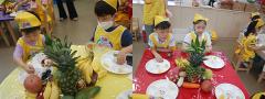 요리선생님과 담임 선생님께 “과일과 채소 골고루 먹을게요”라며 약속을 했답니다.