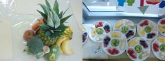 영양 선생님과 인사를 나누면서 과일과 채소 이름도 알아보고 빨강, 노랑, 하얀, 초록, 보라색의 과일과 채소의 비밀을 알아 보았답니다.