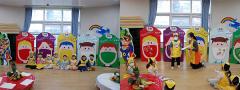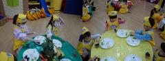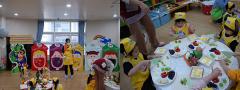 수업을 위해 바나나, 파인애플, 브로콜리, 오이 등 다양한 과일과 채소로 알록달록 교실을 꾸며주고, 요리 수업 때 친구들에게 나눠줄 달콤한 향이 나는 과일들도 접시에 담아 준비했어요.