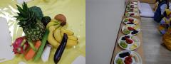요리 수업을 위해 접시에 5가지 색 과일과 채소를 담아 요리 수업도 준비 완료 하였답니다.