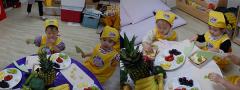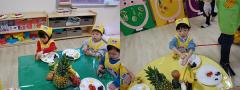 영양 수업을 위해 생과일들이 책상 위에 하나씩 올려졌어요. 과일향이 누리반에 가득해지니 어린이집 선생님께서도 너무 좋아하셨답니다.