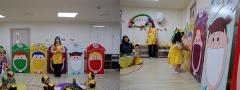 영양선생님의 활기찬 인사를 시작으로 5가지 과일과 채소의 건강 비법을 우리 친구들이 재미있게 배우고 있어요.