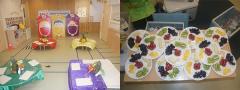 어린이집 유희실에서 오늘 수업이 진행되었어요. 오색 칠판 친구들도 준비 완료가 되었답니다.