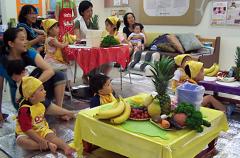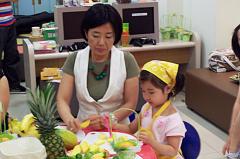 "이렇게 꽂으면 되요"라고 노란 파인애플을 쑥 꽂는 우리친구를 보며 엄마가 흐믓해 했답니다.