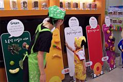 "이건 노란색 과일 오렌지랍니다." 카메라 맨 아저씨에게 알려주는 친구도 있었답니다.