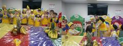 신선한 과일과 채소들을 책상 위에 가득 올려 두니 교실이 풍성해졌네요. 파파야와 용과를 처음 보는 친구들은 신기해하면서 호기심을 가졌어요. 수업 준비를 마쳤으니 이제 친구들에