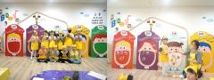 도담어린이집 친구들을 위해 하늘반을 알록달록 과일과 채소 향기로 가득하게 하고 오색 칠판 친구들도 건강맨과 준비를 끝냈답니다.