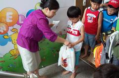 열심히 수업한 우리 친구에게 선물을 주고 있답니다.