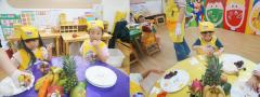 요리 선생님께 과일 박사 수료증을 받으면서 우리 친구들은 “과일과 채소를 골고루 먹을 수 있어요!” 라고