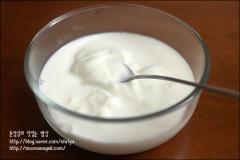 플레인 요구르트(2팩)와 우유(5), 레몬즙(2)을 석어주면 되지요....