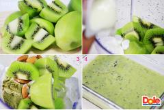 키위 4개, 플레인 요거트 1개, 녹차가루 2작은술, 아몬드 7개, 얼음 반컵, 꿀 약간 혹은 설탕