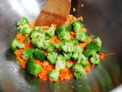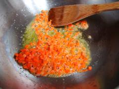 팬에 식용유를 넉넉히 두르고... 단단한 당근부터 볶아주세요...