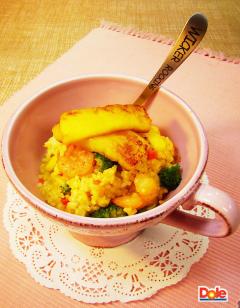카레향이 솔솔 나면서 파인애플의 달콤한 맛이 일품인 파인애플볶음밥이에요.