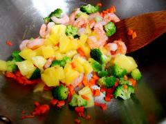 이어서 새우살과 파인애플을 넣어 살짝 볶은 뒤~~