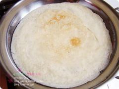 팬에 기름을 살짝 두르고 약한 불에서 크레이프반죽 1/2 분량을 넓적하게 펴서 붓고..