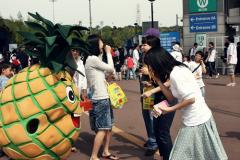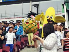귀엽고 깜찍한 바나나인형과 파인애플 인형은 축구 경기만큼이나 많은 사람들의 주목을 받았습니다.