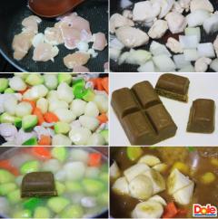 8. 야채 볶다가 육수나 물을 자작하게 넣어주시구요.이제 잘라놓은 카레를 투입!