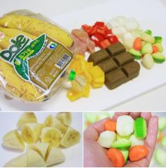 바나나 2개, 당근 반개, 감자 1개, 호박 반개, 닭안심살 3개, 양파 반개, 파프리카 반개씩, 카레