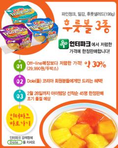 Dole(돌) 후룻볼 제품 198g 3종류 (파인청크, 밀감, 후룻샐러드)를 온라인 쇼핑몰인 인터파크(Inter-park)