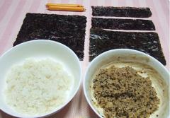 김밥을 써실 때 칼을 씻어 가면서 써시면 이쁘게 썰어진답니다. ^^