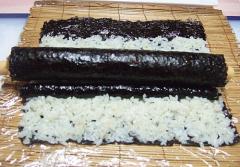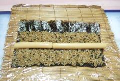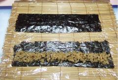 전장에 밥을 얇게 펴고 위에 귀를 먼저 올려 주세요