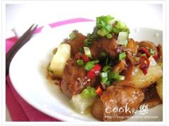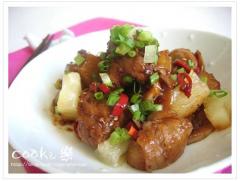 7. 고기가 색이 날정도로 조려지면 파인애플을 넣고 조금 후에 불끄고 완성!
