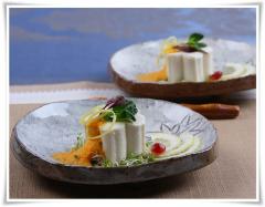 틀로 찍어놓은 생식용 두부를 접시에 얌전하게 올리고