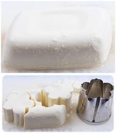 연두부를 모양좋게 틀로 찍어내 준비합니다.