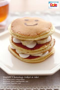 맨위에는 다시 팬케익을 한장 올려주면 너무너무 귀엽고 사랑스런 바나나 케이크 완성이에요.