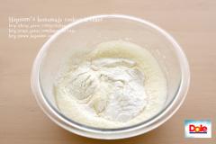 거기에 차가운 플레인 요구르트를 넣고 주걱으로 섞어주면 크림 완성이에요.