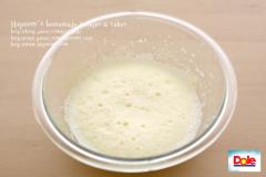우유를 절반씩 나눠 넣어가며 거품기로 섞어주세요.