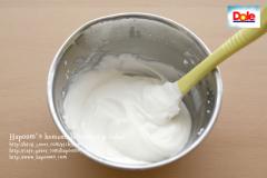 차가운 생크림에 설탕을 아주 약간 넣은뒤 거품기로 풀어 휘핑하여 단단히 올려주세요.