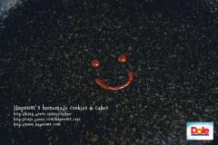 약불에 달군 팬위에 코코아가루를 섞은 반죽을 스마일 모양으로 짜줍니다. 몇초정도 익힌뒤~