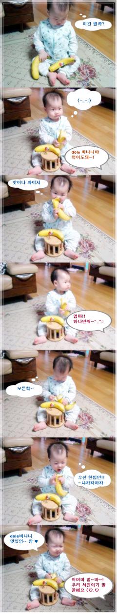 바나나라는걸 전혀 알지못하는 우리 서진군 입을 "아~~"벌려서 한입 다시베어 먹더니