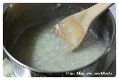 밥을 주걱으로 으깨면서 저으면서 끓이고